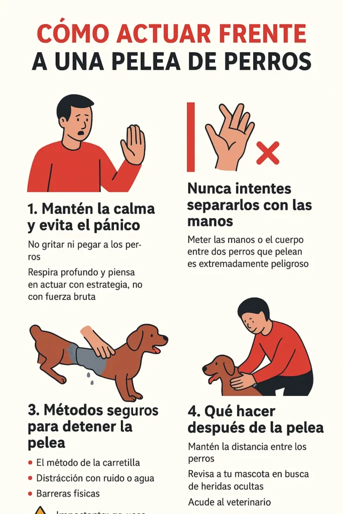 Enfrentar una pelea de perros es una situación complicada, pero si sabes cómo actuar con calma y seguridad, puedes evitar lesiones graves y proteger a tu mascota.
