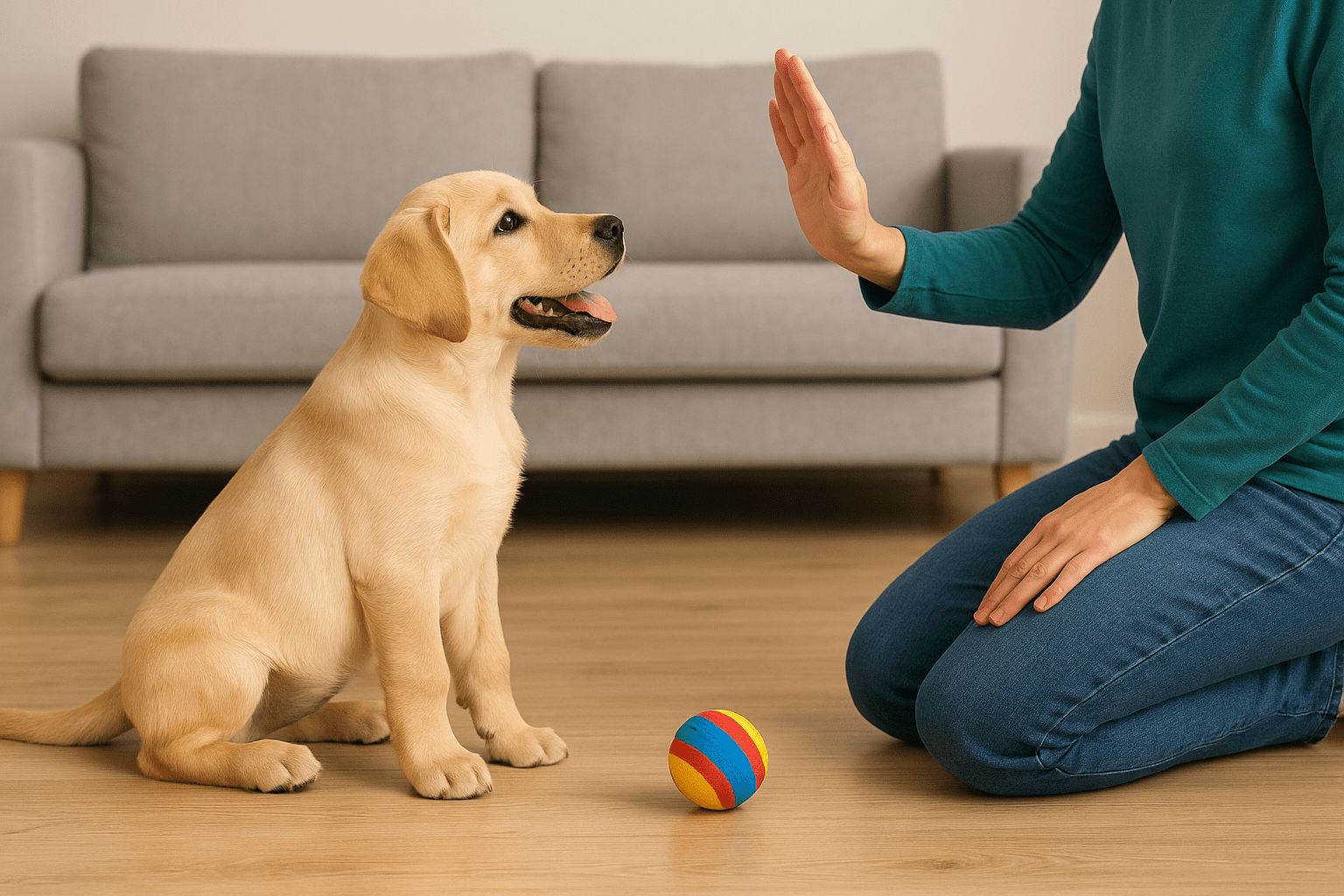 Usa palabras cortas y claras como “¡Sienta!”, “¡Quieto!”, “¡Ven!”.